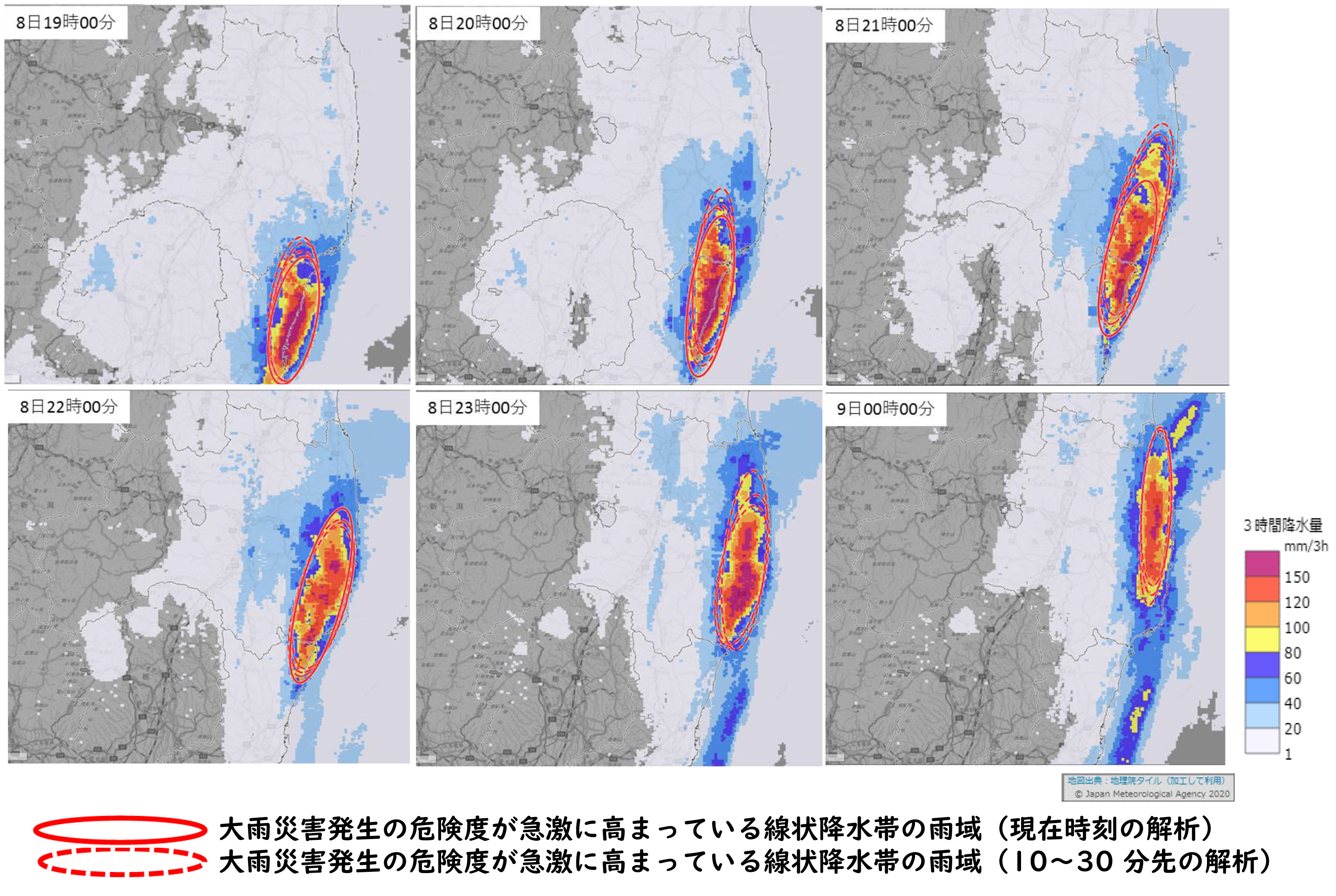 9月8日から9日にかけての本県での線状降水帯の発生状況