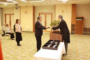 知事は、「先人の方々から受け継がれている「開拓者精神」を胸に、「みんなの想いや願いを結び、未来(あす)へとつながるまち 郡山」の実現に向け、より一層まい進されることを期待します。」とお祝いを述べました。
