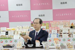 内堀知事は、『「ふくしまプライド。」全力応援フェア』の開催報告のため県庁を訪れた株式会社セブン‐イレブン・ジャパン、株式会社ヨークベニマル及び生産者の皆さまによる表敬を受けました。