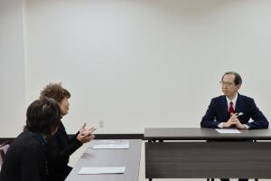 内堀知事は、イクボス面談を実施し、長期間の育児休業を取得した男性職員と男性職員の上司を対象に育児休業の体験談、育児休業を長期間取得したことによる気づきや男性職員の育児休業の取得についての意識等の変化などに関して意見交換を行いました。