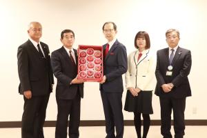 内堀知事は、出荷盛期を迎えたりんご「ふじ」の贈呈と今年の生産状況について報告するため県庁を訪れたJAふくしま未来の関係者の皆さんの表敬訪問を受けました。