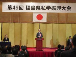 内堀知事は、「大震災、原発事故を乗り越え、個性を生かし育てる私学教育の振興と保護者の経済的負担軽減を」を大会テーマに開催された県私学振興大会に出席しました。