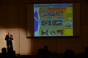 内堀知事は、熊本県で開催した「チャレンジふくしまフォーラムin熊本」で、来場した約150名の熊本県民等の皆さんを前に、復興の状況や力強く歩みを進める県民の姿などの「ふくしまの今」、そして食や観光などの「ふくしまの魅力」を伝える講演を行いました。