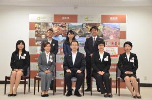 JICAボランティアとして2年間、開発途上国で活動する福島県出身者4名が、内堀知事に出発前の表敬訪問を行い、内堀知事より、「うつくしま国際協力大使」の委嘱状が交付されました。