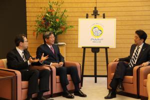 内堀知事は、地方自治体や経済界が連携して男性の休暇取得を促すキャンペーン「さんきゅうパパプロジェクト」の全国知事会代表として首相官邸を訪れ、安倍首相を表敬訪問しました。