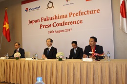 内堀知事は、ホーチミンのホテルでベトトラベル(旅行代理店)とベトジェットエア(航空会社)との合同記者会見に出席し、平成30年2月から4月にかけて、福島空港開港以来、ベトナムとのチャーター便として過去最大となる連続15本(30便)の運行と、それを利用した旅行商品の造成が決定したことを発表しました。
