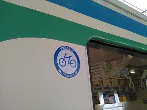 電車には「自転車持ち込みOK」のステッカーも貼ってありました。