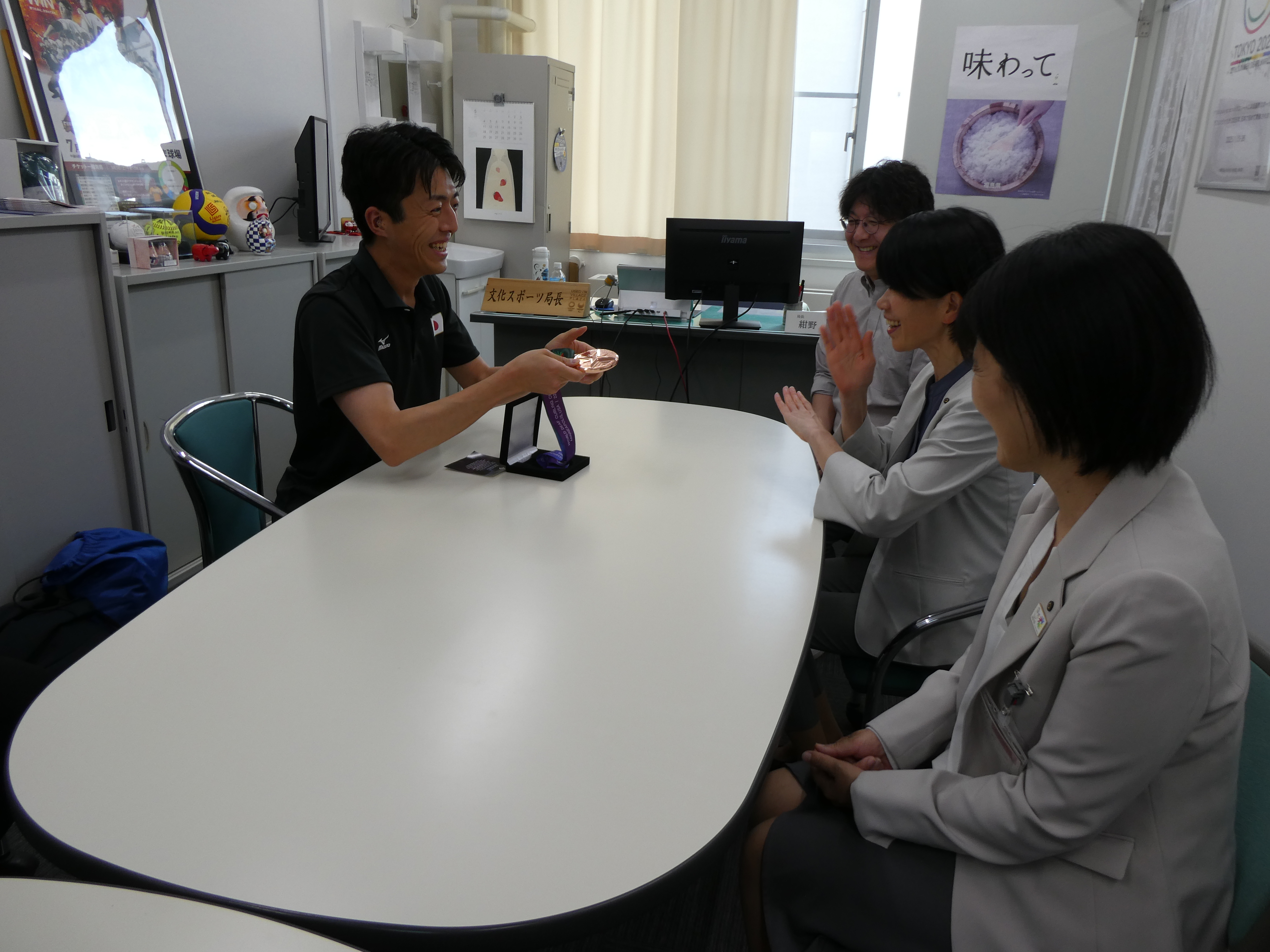 「アジア太平洋ろう者バスケットボール選手権大会2024」日本代表越前由喜選手が文化スポーツ局長を表敬訪問しました!