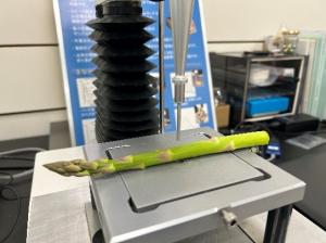 図1 アスパラガスの輸送調査の様子 図2 アスパラガス物性(硬さ)測定の様子
