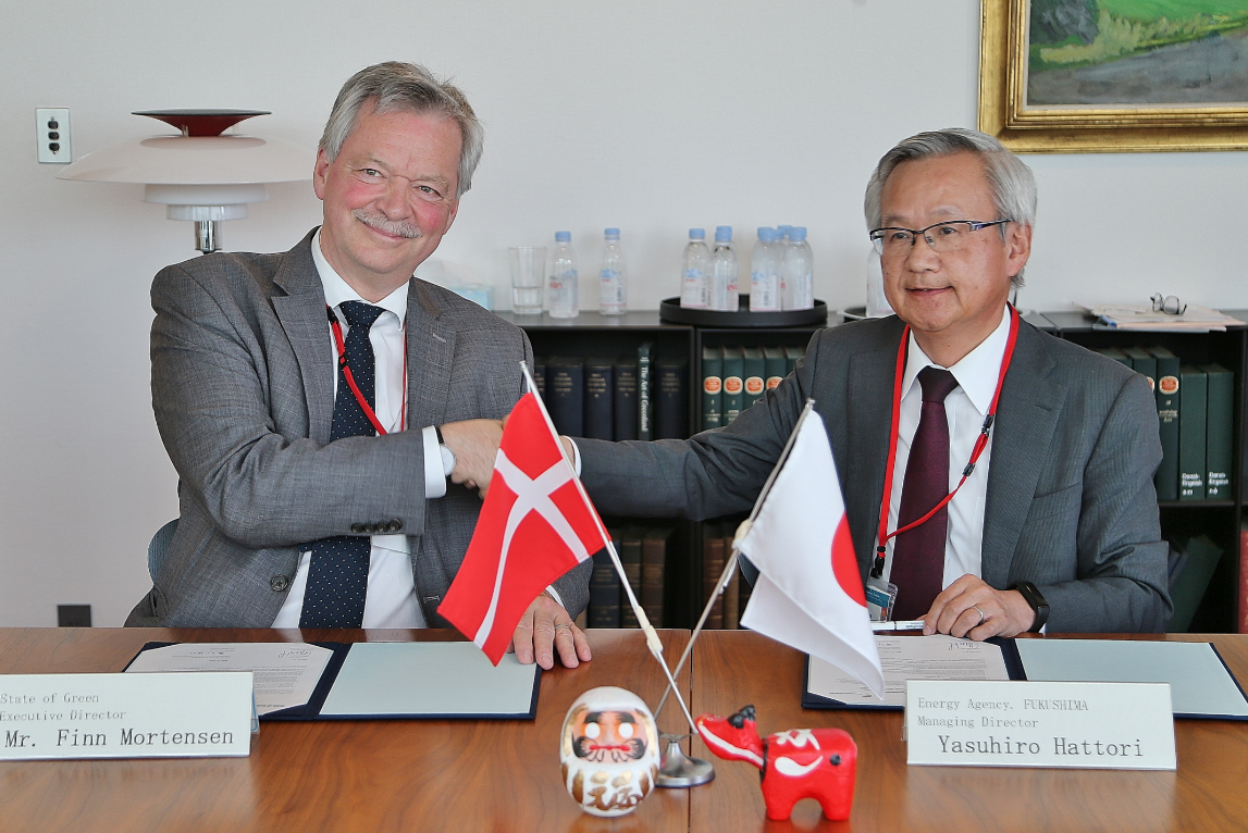 再生可能エネルギー先進国デンマークの再エネ等関連機関であるSOGと本県の再エネ関連産業育成・集積支援機関EAFによる連携覚書を2019年5月23日を締結し、連携を深めています。