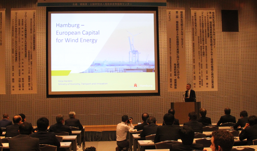 | 2018年11月6日~9日 | ハンブルク州訪問団による来県・視察 ・橋本商工労働部長(当時)表敬訪問 ・REIFふくしま「国際経済交流セミナー」における講演 ・福島再生可能エネルギー研究所、県内企業視察 |