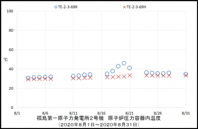 そのため、2号機原子炉圧力容器内温度及び原子炉格納容器内温度が若干上昇していますが、事前の予測範囲内での変化となっています。