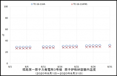 原子炉格納容器は事故時の放射性物質放出に対する障壁の一つで、事故時に燃料の一部が原子炉格納容器に溶け落ちていることを考慮し、全体的に著しい温度上昇傾向がないことを確認しています。