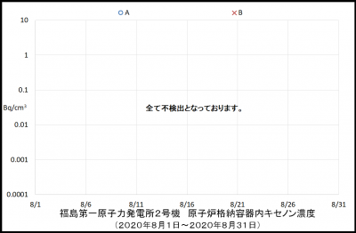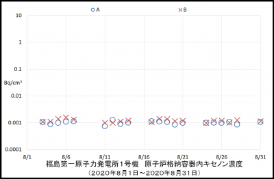 核燃料であるウランが核分裂する際にキセノンが発生することから、定常的に核分裂が発生していないことを確認する指標として原子炉格納容器内のキセノン濃度を監視しています。実施計画では1ベクレル/立方センチメートル以下であることが求められています。なお、1号機のキセノン濃度については、モニタの感度が高いことからウランの自発核分裂による低いレベルのキセノンが検出されています。