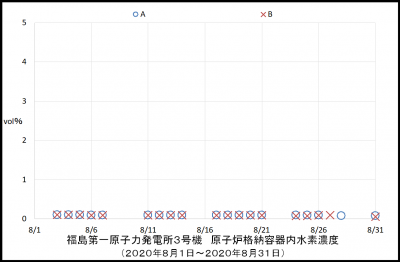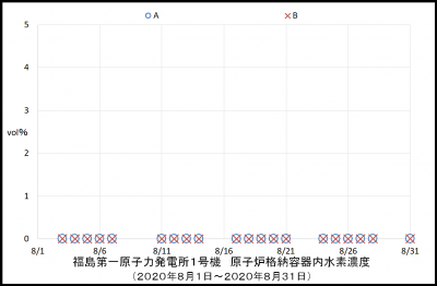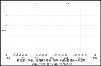 燃料デブリ等の強い放射線により冷却水の一部が分解されて水素が発生します。水素爆発の発生を防止するため、原子炉格納容器内に窒素を注入するとともに、水素濃度の監視も行っています。実施計画では格納容器内水素濃度が2.5vol%以下になるように求められています。