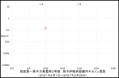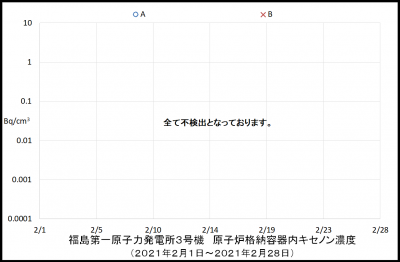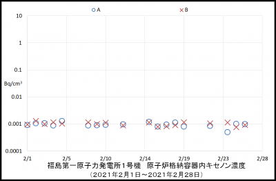 核燃料であるウランが核分裂する際にキセノンが発生することから、定常的に核分裂が発生していないことを確認する指標として原子炉格納容器内のキセノン濃度を監視しています。実施計画では1ベクレル/立方センチメートル以下であることが求められています。