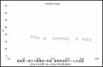 使用済燃料から発生する熱を除去するため使用済燃料プールの水は常時循環冷却されており、制限値は1号機が60度、2号機から3号機が65度となっています。
