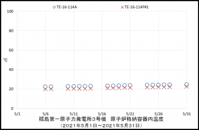 ※原子炉圧力容器内温度、原子炉格納容器内温度、使用済燃料プール水温度は気温の変動により指示値に若干の変動があります。