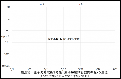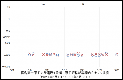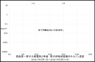 核燃料であるウランが核分裂する際にキセノンが発生することから、定常的に核分裂が発生していないことを確認する指標として原子炉格納容器内のキセノン濃度を監視しています。実施計画では1ベクレル/立方センチメートル以下であることが求められています。