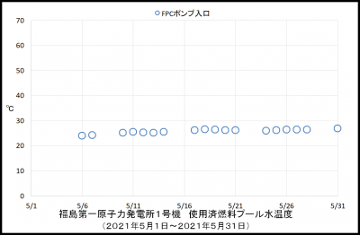 使用済燃料から発生する熱を除去するため使用済燃料プールの水は常時循環冷却されており、制限値は1号機が60度、2号機から3号機が65度となっています。