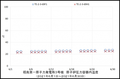 ※原子炉圧力容器内温度、原子炉格納容器内温度、使用済燃料プール水温度は気温の変動により指示値に若干の変動があります。