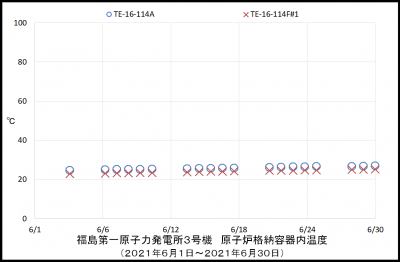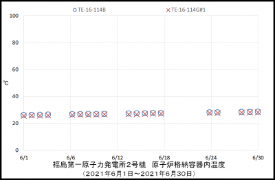 原子炉格納容器は事故時の放射性物質放出に対する障壁の一つで、事故時に燃料の一部が原子炉格納容器に溶け落ちていることを考慮し、全体的に著しい温度上昇傾向がないことを確認しています。