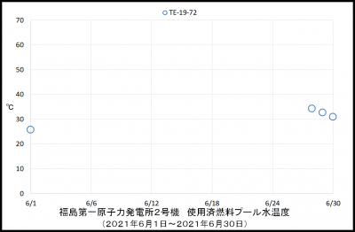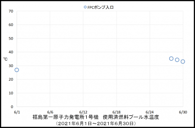 使用済燃料から発生する熱を除去するため使用済燃料プールの水は常時循環冷却されており、制限値は1号機が60度、2号機から3号機が65度となっています。