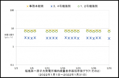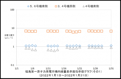 福島第一原子力発電所1~3号機原子炉建屋内の原子炉圧力容器及び原子炉格納容器内に残されている燃料、燃料デブリの未臨界確認は、通常、希ガスモニタにより監視していますが、希ガスモニタで監視できない場合は、代替として、原子炉圧力容器底部温度上昇率及び敷地境界付近に設置されたモニタリングポストによる空間線量率の監視を行うことになっています。また、東京電力ホールディングス株式会社は、モニタリングポストを補完する位置付けで、敷地内の空間線量率把握を目的に設置されている線量表示器の一部(6ヶ所)も活用する運用をしています。