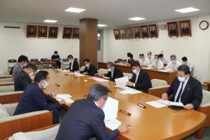 委員会終了後、正副委員長及び理事により、議長に対し調査結果報告を行いました。 - 総括審査会理事会を開き、10月7日に開催する総括審査会の質問順序を決定しました。
