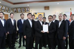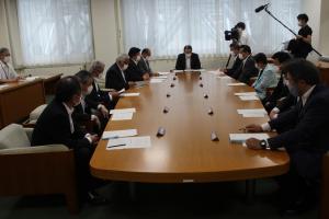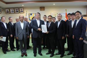- 議員定数等検討委員会を開き、昨年12月から検討を進めてきた次期一般選挙における定数等について答申案を協議、決定し、委員会終了後、渡辺義信議長に対して答申を行いました。
