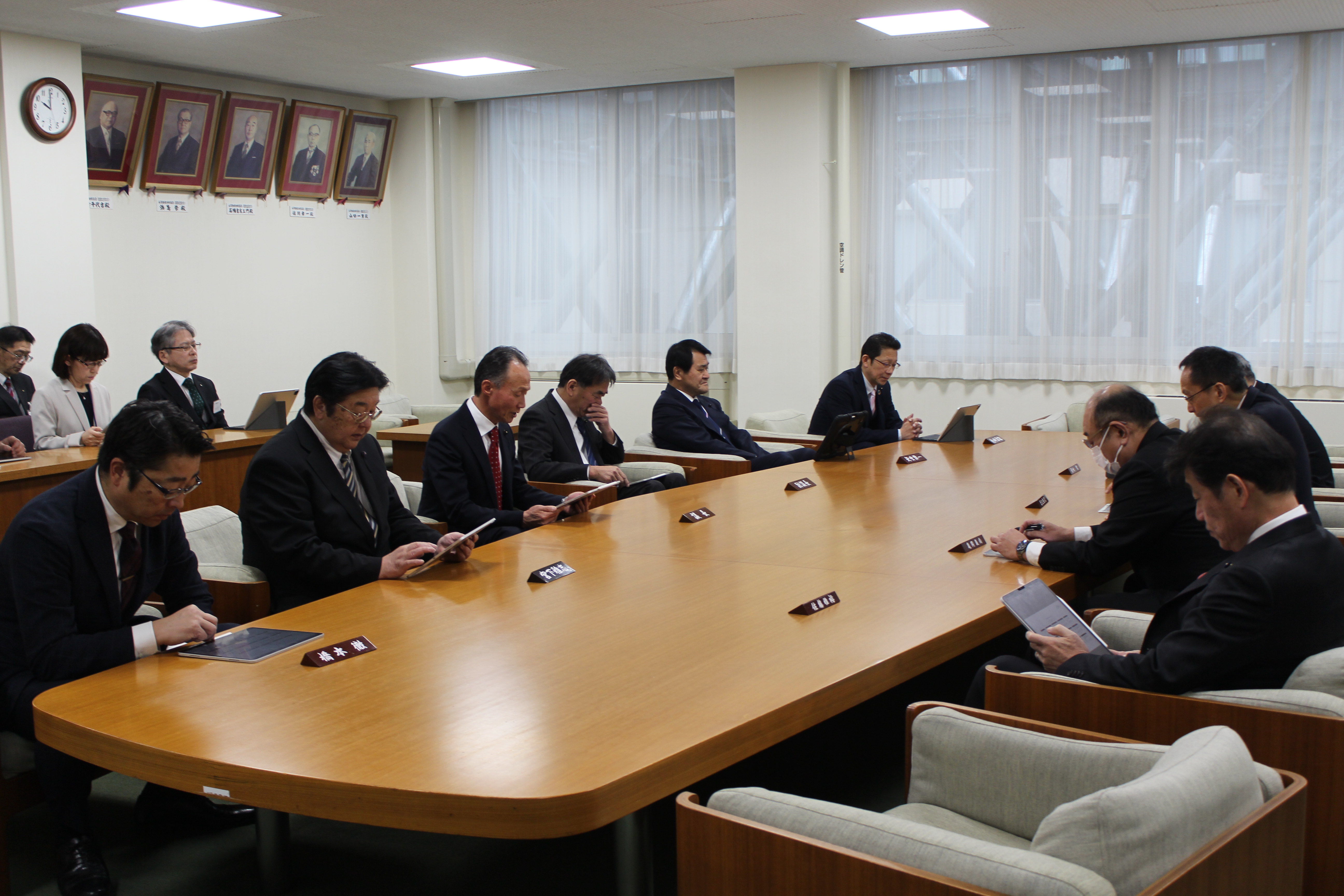- 各派交渉会を開き、仮議場の議席について確認しました。