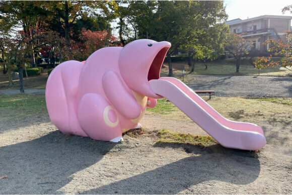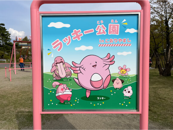 郡山市の開成山公園内に、2022年3月に開園した「ラッキー公園 in こおりやまし」。園内に入ってまず目を引くのは、高さ約6mもある巨大な「ラッキー」の遊具。スライダーや音の出る遊びパネルもあり、さまざまな遊びをたのしむことができます。ほかにもさまざまなポケモンたちをモチーフにした遊具を設置。開成山公園には広い園内を生かしたウォーキングコースやバラ園などがあるほか、野外音楽堂には、ポケモンの絵が描かれたマンホール蓋『ポケふた』も設置されており、家族で楽しめるスポットです。