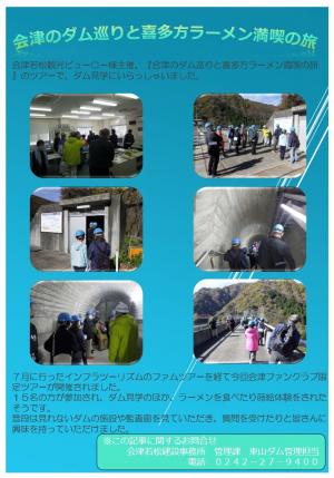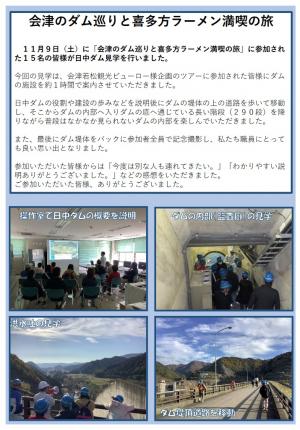 11月9日(土)に会津若松観光ビューロー様企画の「会津のダム巡りと喜多方ラーメン満喫の旅」が開催され、15名の方々に東山ダム・日中ダムを見学していただきました!