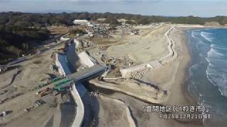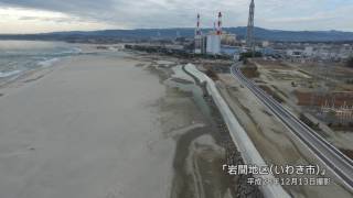 ◆この動画は平成28年12月13日に工事現場上空からドローンにより撮影したものです。◆福島県いわき市岩間地区は、地震・津波により海岸施設に被害を受け、復旧工事が行われています。 上空からの映像では、...