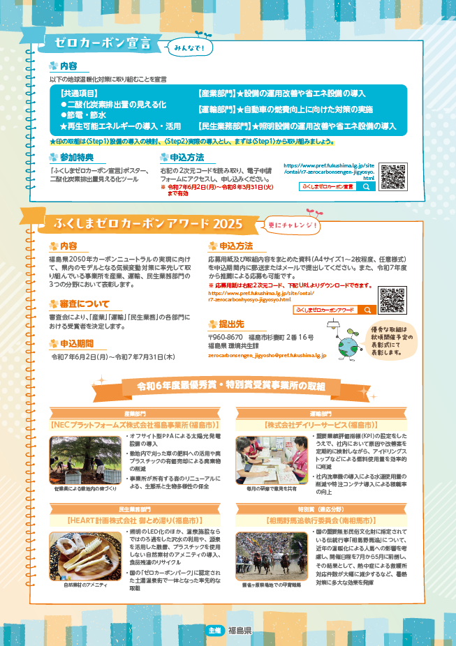 令和7年度「ふくしまゼロカーボン宣言」事業(事業所版)実施要領 [PDFファイル/157KB]
