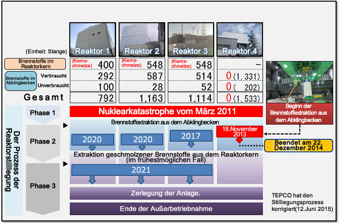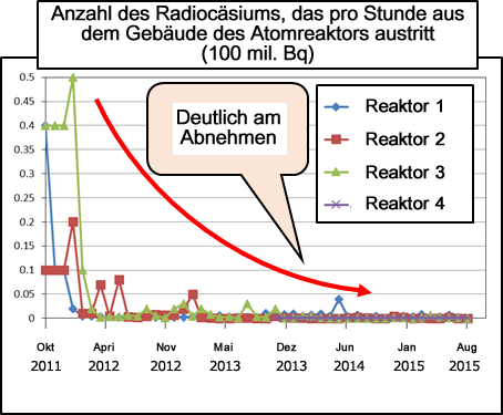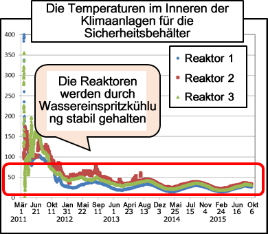 • Die Konzentrationen der radioaktiven Substanzen werden überwacht und es wurden keine Anzeichen für einen erneuten kritischen Zustand beobachtet
