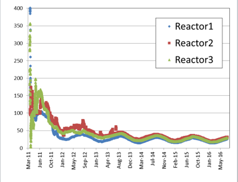 Las concentraciones de sustancias radiactivas están siendo monitorizadas y no se observan signos de vuelta a la situación crítica