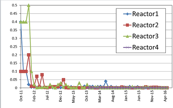 La temperatura del reactor se mantiene estable por debajo de 50º ( 2016 julio)