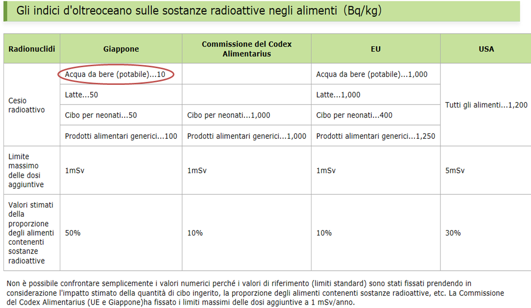![]() | Limiti standard per le sostanze radioattive negli alimenti in Giappone: 10 Bq/kg