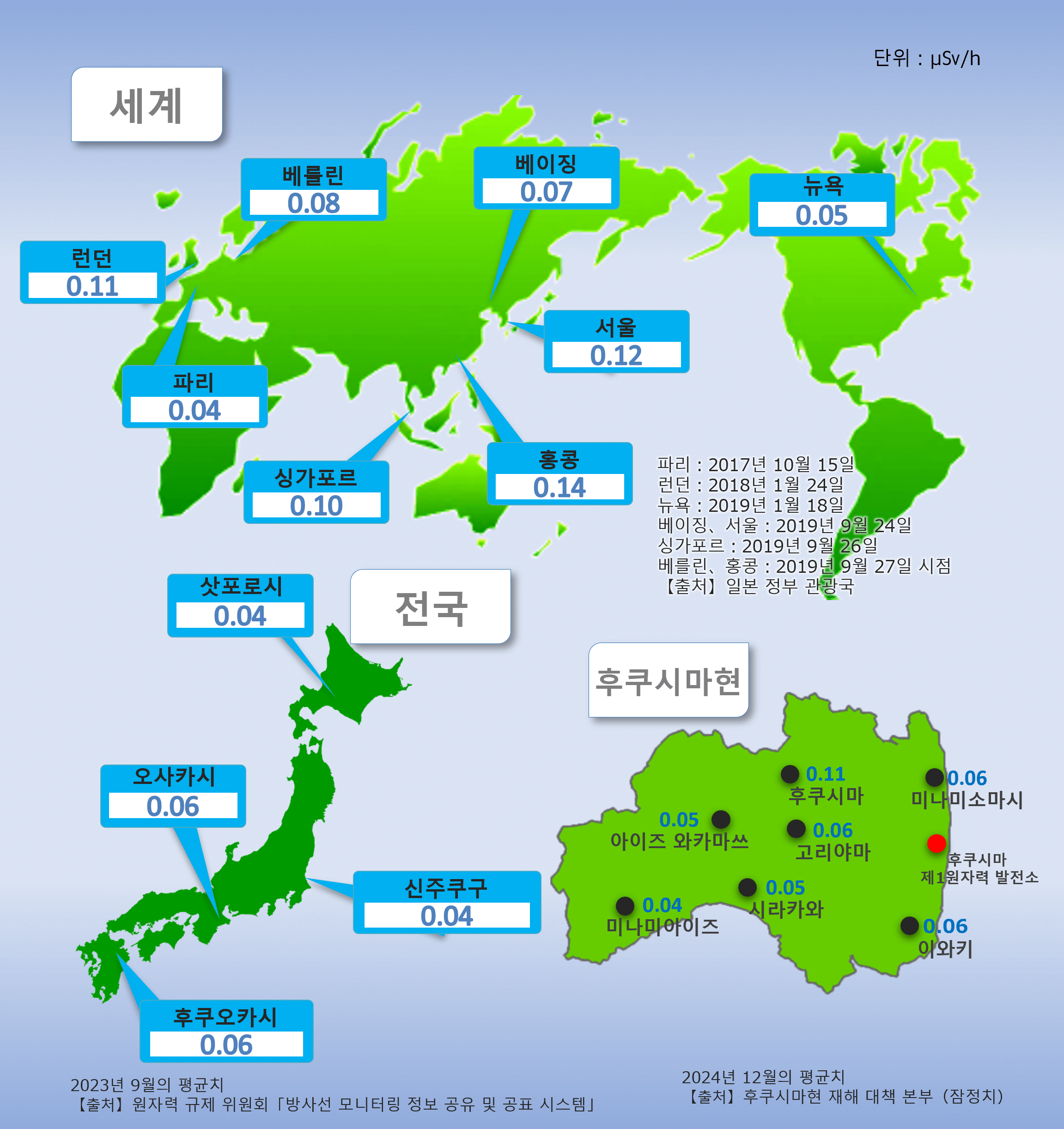 세계 및 일본 전국의 공간선량률과 후쿠시마