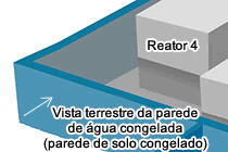 Ao embutir canos congelados ao redor da construção, a água subterrânea e o solo podem ser congelados para a construção de paredes de gelo. Este sistema evita que a água se aproxime do reator e suprime o fluxo de água subterrânea.