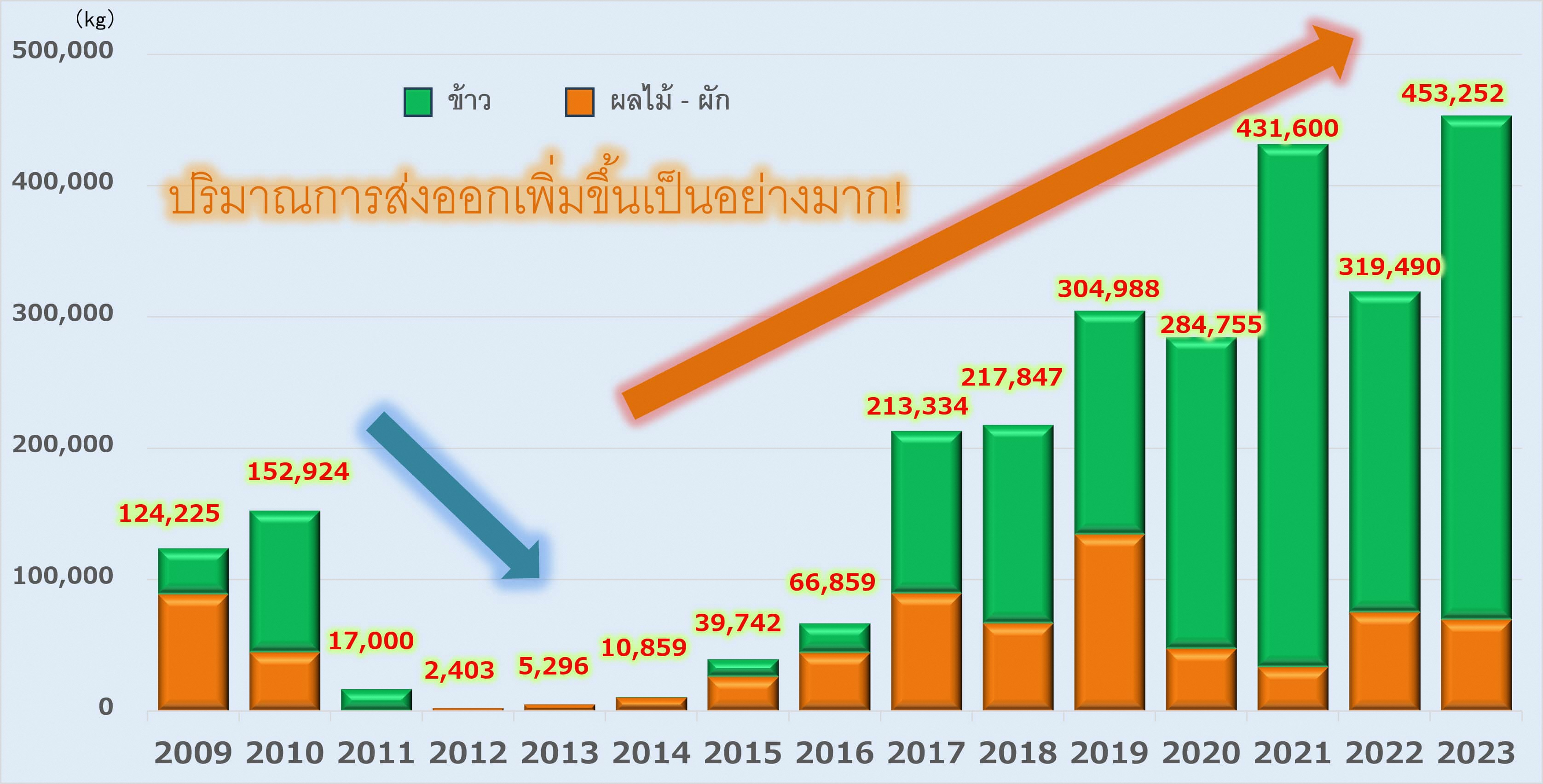 สถานการณ์การส่งออกเพิ่มขึ้นเมื่อเทียบกับช่วงก่อนเกิดแผ่นดินไหว และปริมาณการส่งออกในปีงบประมาณเรวะที่ 6 (ค.ศ. 2024) ก็เป็นปริมาณการส่งออกที่สูงที่สุดในประวัติการณ์