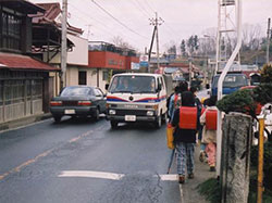 | (1)整備前の現道の状況 | (2)工事完成区間 | (3)工事完成区間 | ||