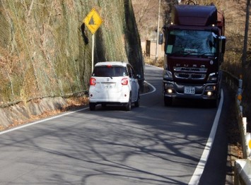 | (1)現道の状況 | (2)工事の状況(令和6年12月末現在) | (3)工事の状況(令和6年12月末現在) | ||