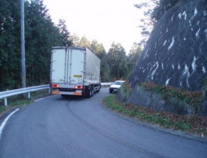 | (1)整備前の現道の状況 | 開通式の状況 | |