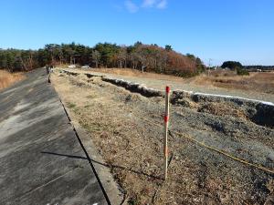 金ヶ森ため池(浪江町)を復旧しました。双葉郡浪江町大字棚塩地内にある金ヶ森ため池は平成23年3月の大震災により被災しました。 地震により、ため池にはひびが入り、水を貯めることができなくなりました。 また、原子力災害の影響により、金ヶ森ため池は避難指示解除準備区域に指定されています。 避難区域指定解除後の営農再開に向け、平成27年9月に復旧工事を着手し、平成28年8月に完了しました。 1 金ヶ森ため池の復旧状況ため池堤体に入ったひびを掘削除去し、再度盛り立て直しました。