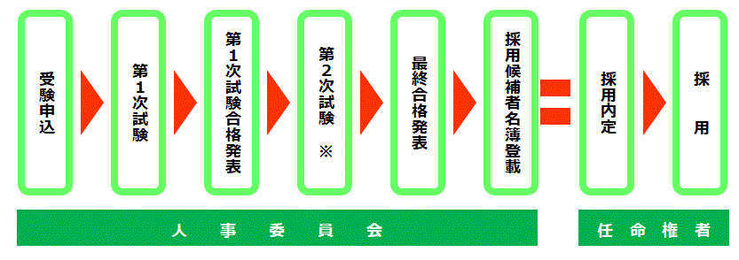 ※県職員(大学卒程度・資格免許職・高校卒程度)及び市町村立学校栄養・事務職員の第2次試験については、第1回と第2回の両方を受験する必要があります。
