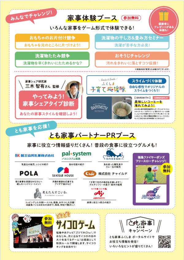 とも家事について、家族で一緒に楽しく学び、理解を深めるイベント「とも家事」ふくしまフェスタを開催します!
