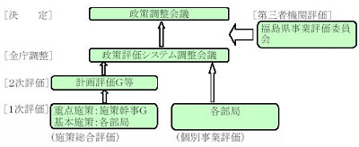 また、平成16年度より、各部局等が評価を行った後、客観性向上等のため、評価決定の前に、福島県事業評価委員会による評価を実施することとしております。