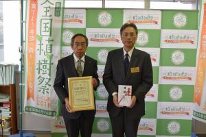 株式会社藤建技術設計センター様から、第69回全国植樹祭のための協賛をいただき、感謝状を贈呈しました。